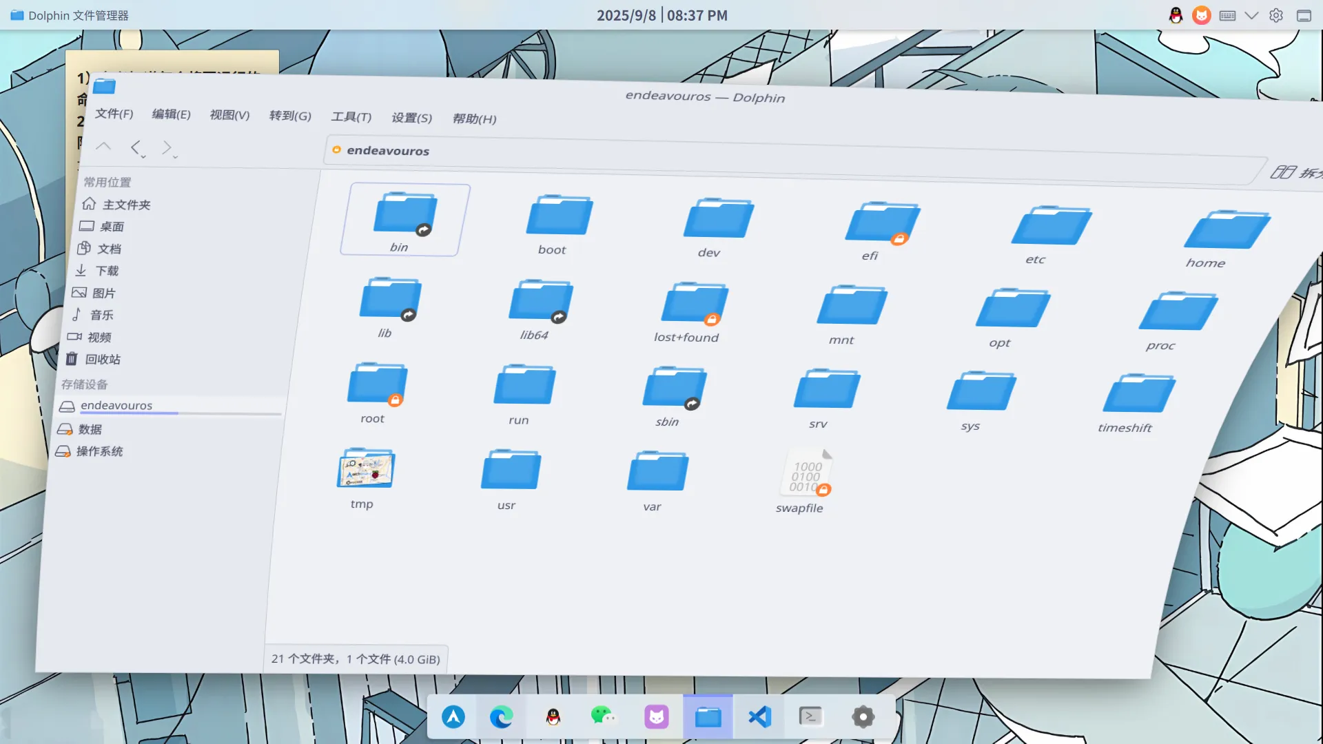 当然,纯Arch我玩不来,我选择了基于Arch衍生而来的EndeavourOS,它支持图形化的安装方式,也预装了一些软件,其他都没怎么动,相比起来更加方便一些。