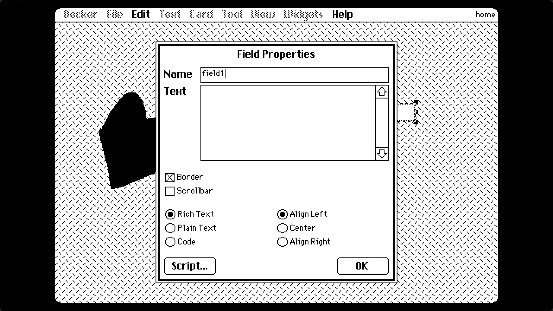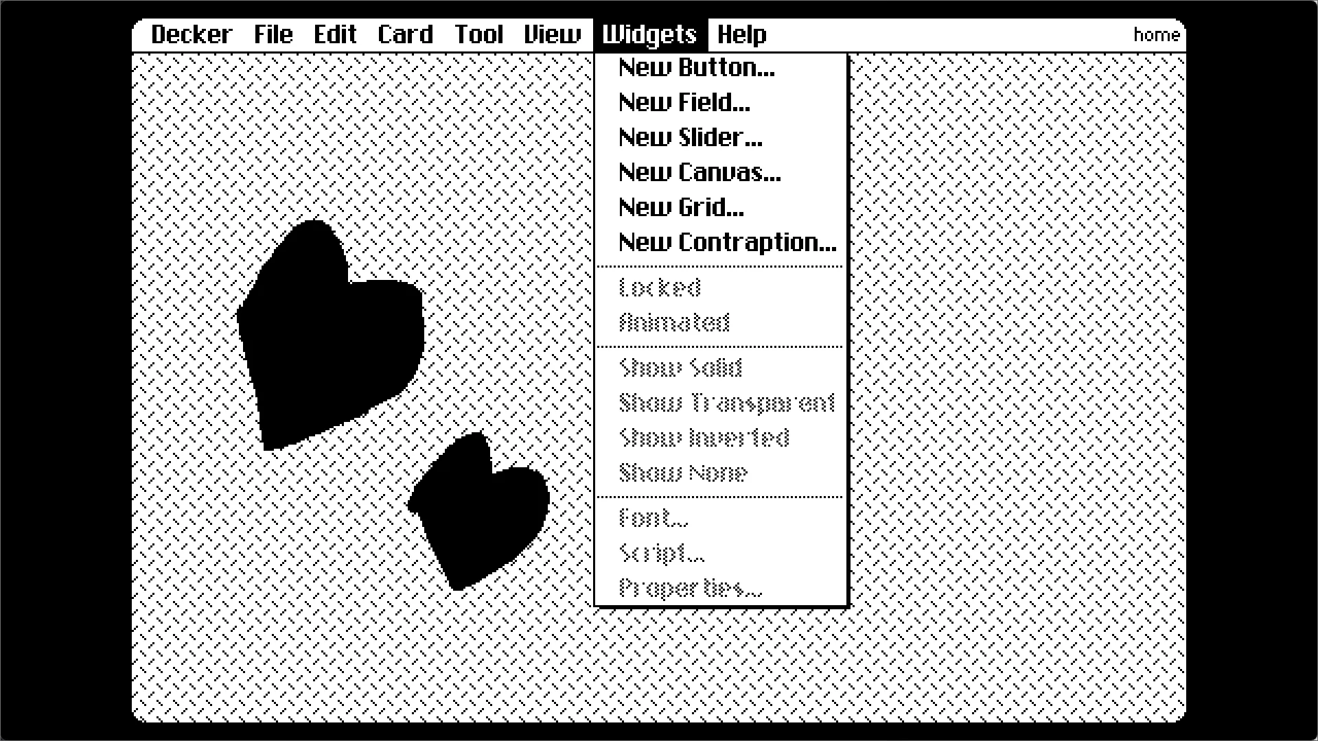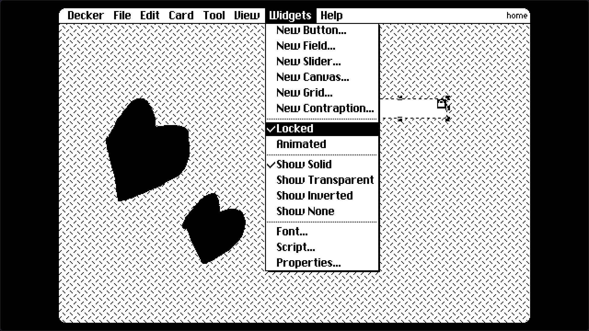 Interact:类似于预览,可以以用户的身份与Windget(控件)交互。Widgets:Windget模式,用于管理和添加此Card上的Windget。Select:矩形框选背景。(不包括Windget)Lasso:不规则框选背景。Pencil:画笔工具,可以在背景上画画。Line:在背景上画线段。Flood:油漆桶工具。Box:画出空心矩形。Filled Box:画出实心矩形。Oval:空心圆。Filled Oval:实心圆。Polygon:不规则实心形状。