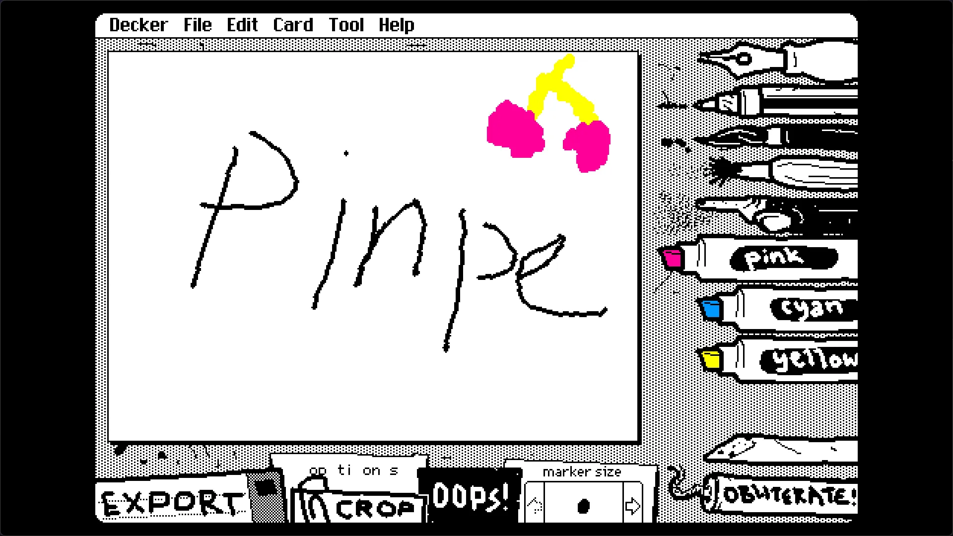实际上,这款软件建立在Decker之上,这是一款模拟麦金塔风格的软件引擎,可以轻松地创建麦金塔风格的软件,这就是Wigglypaint如此复古的原因。