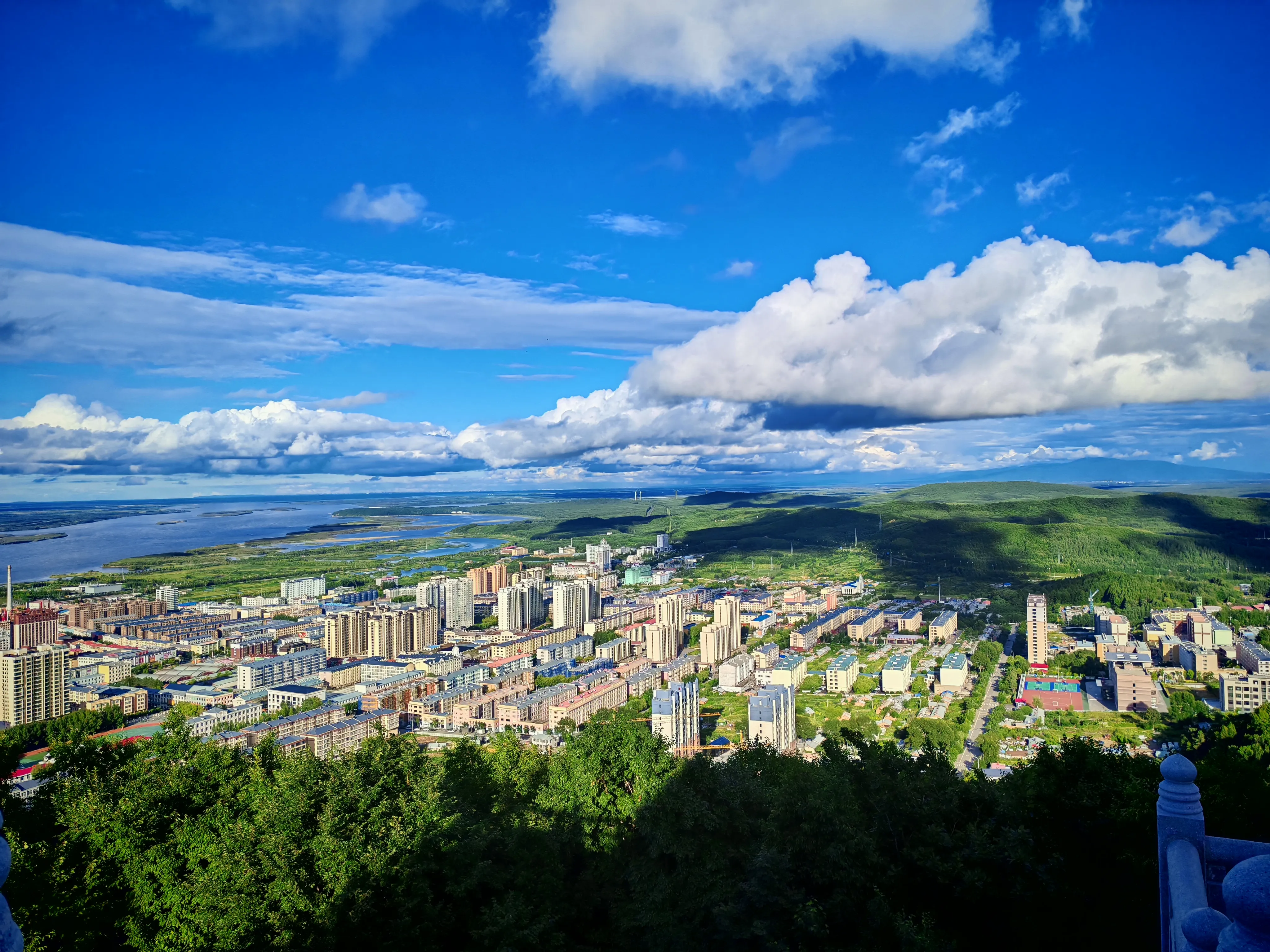 东极阁坐落于全抚远最高的山,可以看到抚远全貌,和俄罗斯风光。