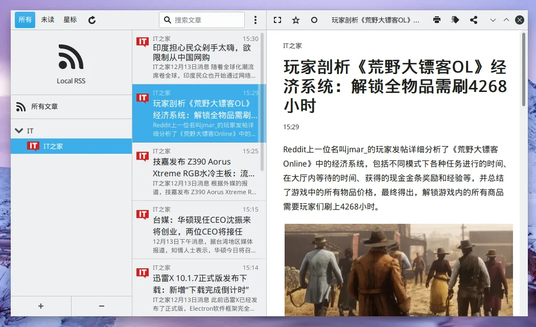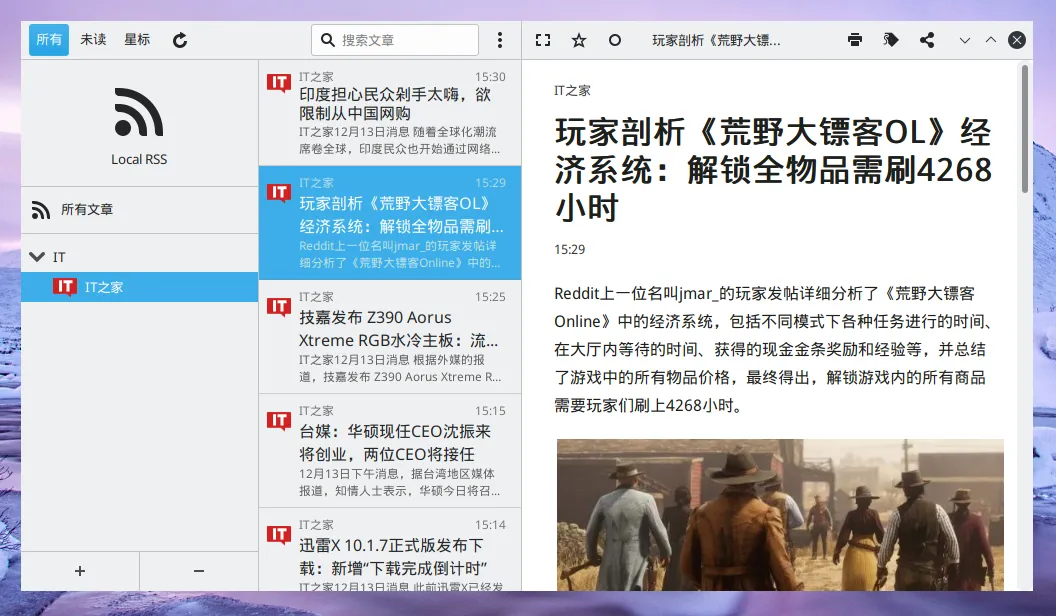原则上,你会的到一个非常令人满意的效果。下面是采用上面的方法之后的 FeedReader 界面:
