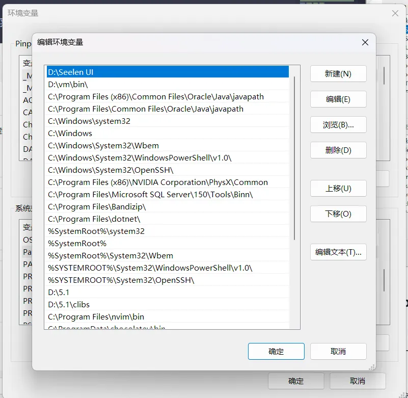 在系统变量里面找到名为Path的数组型变量,点击编辑: