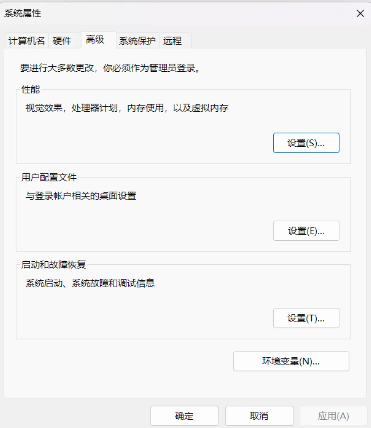 进入以下页面,点击环境变量,即可进入环境变量设置: