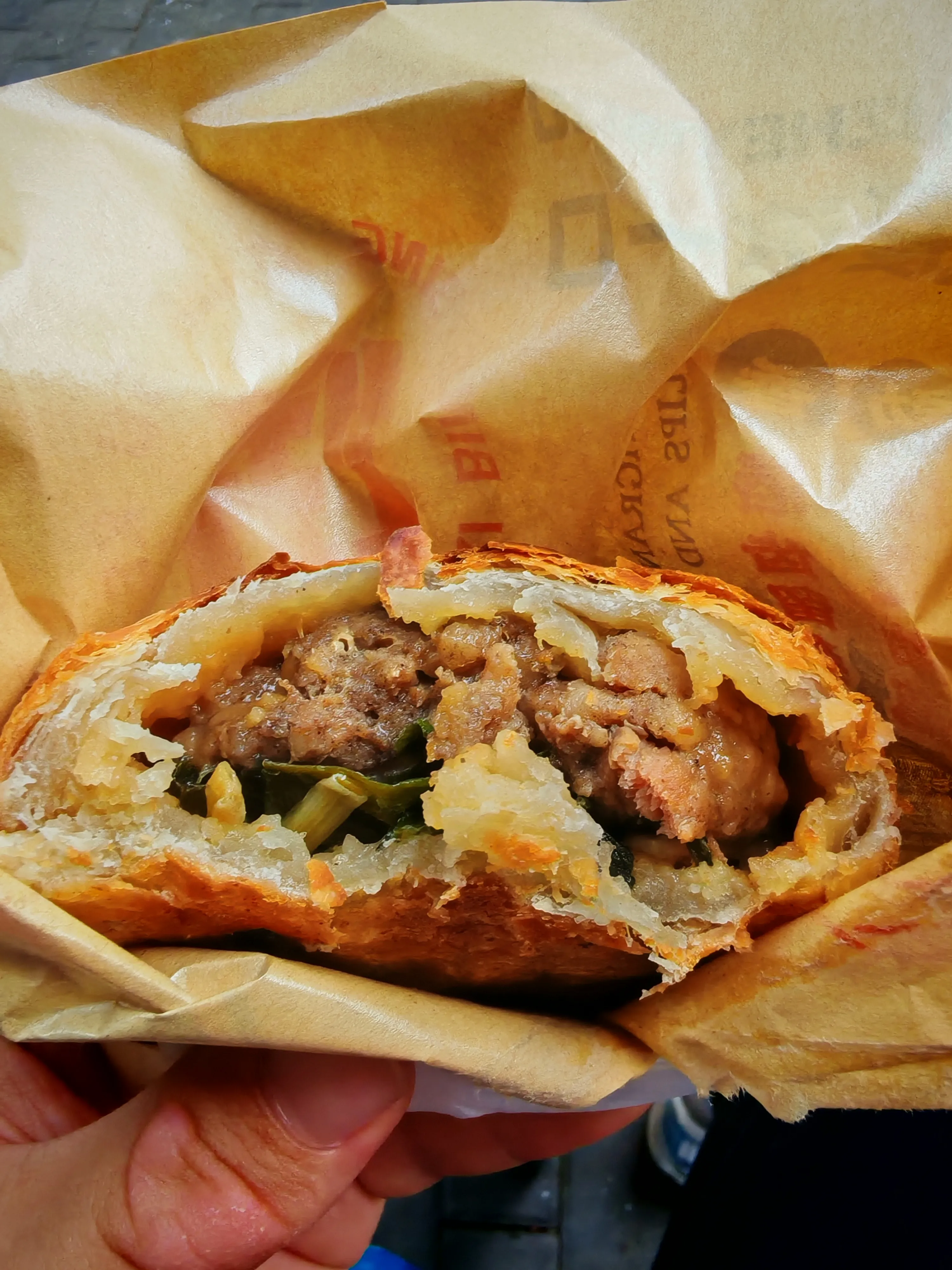 吃完后发现有人卖胡椒饼,听说这是米其林背书的名吃,果然不错,里面肉馅和大葱满满。