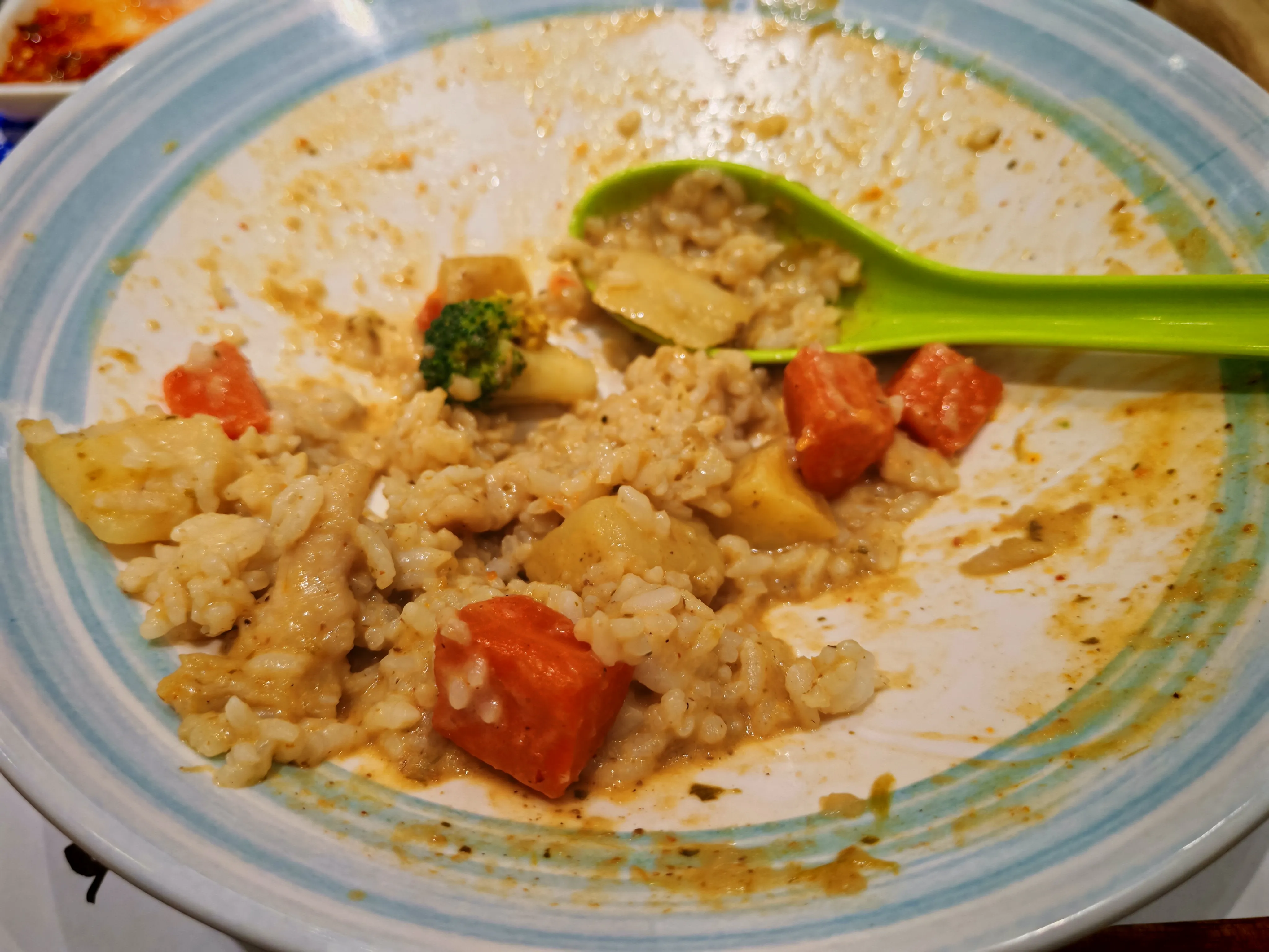 有奶味,还辣,我还是吃不惯泰式咖喱,日式咖喱万岁!