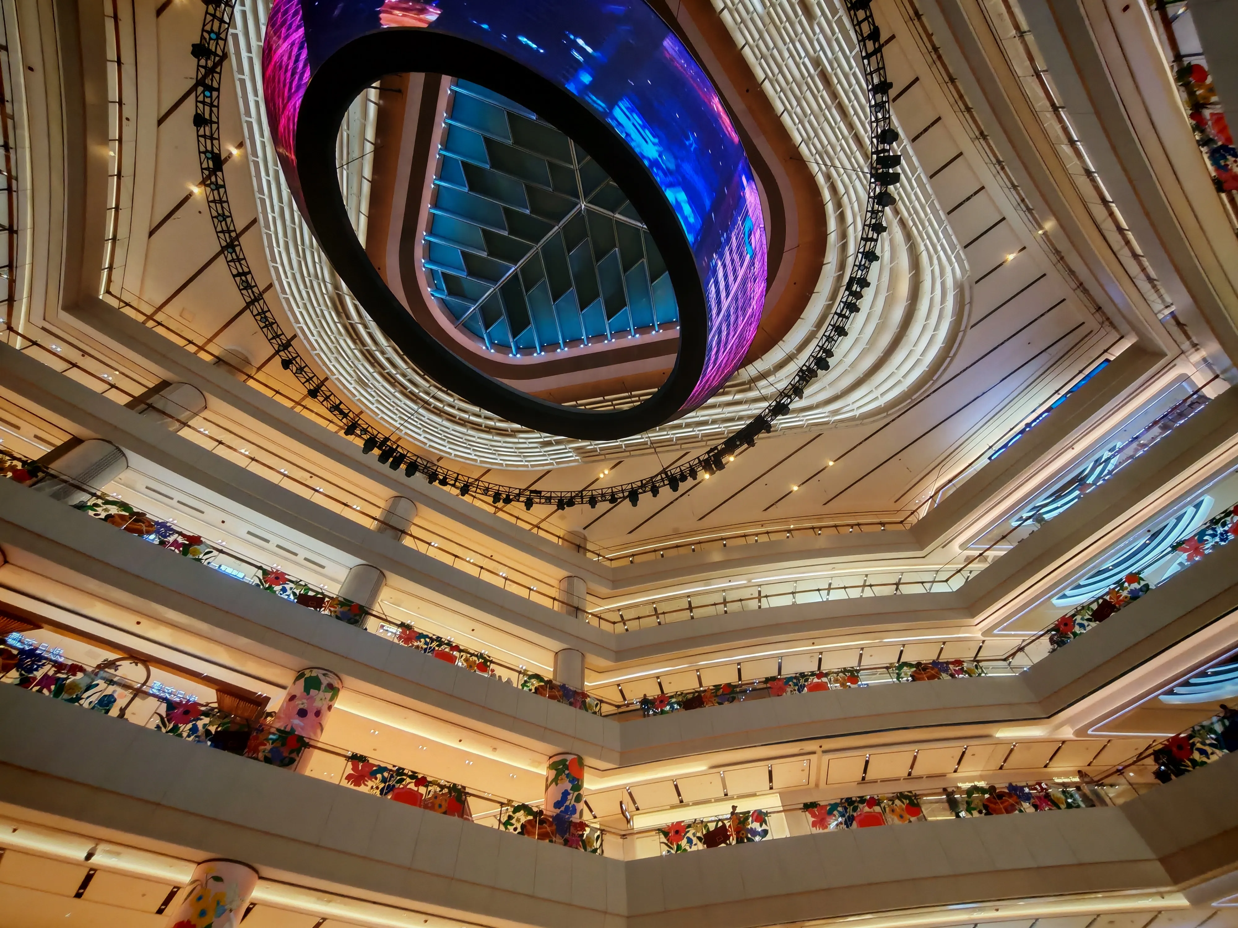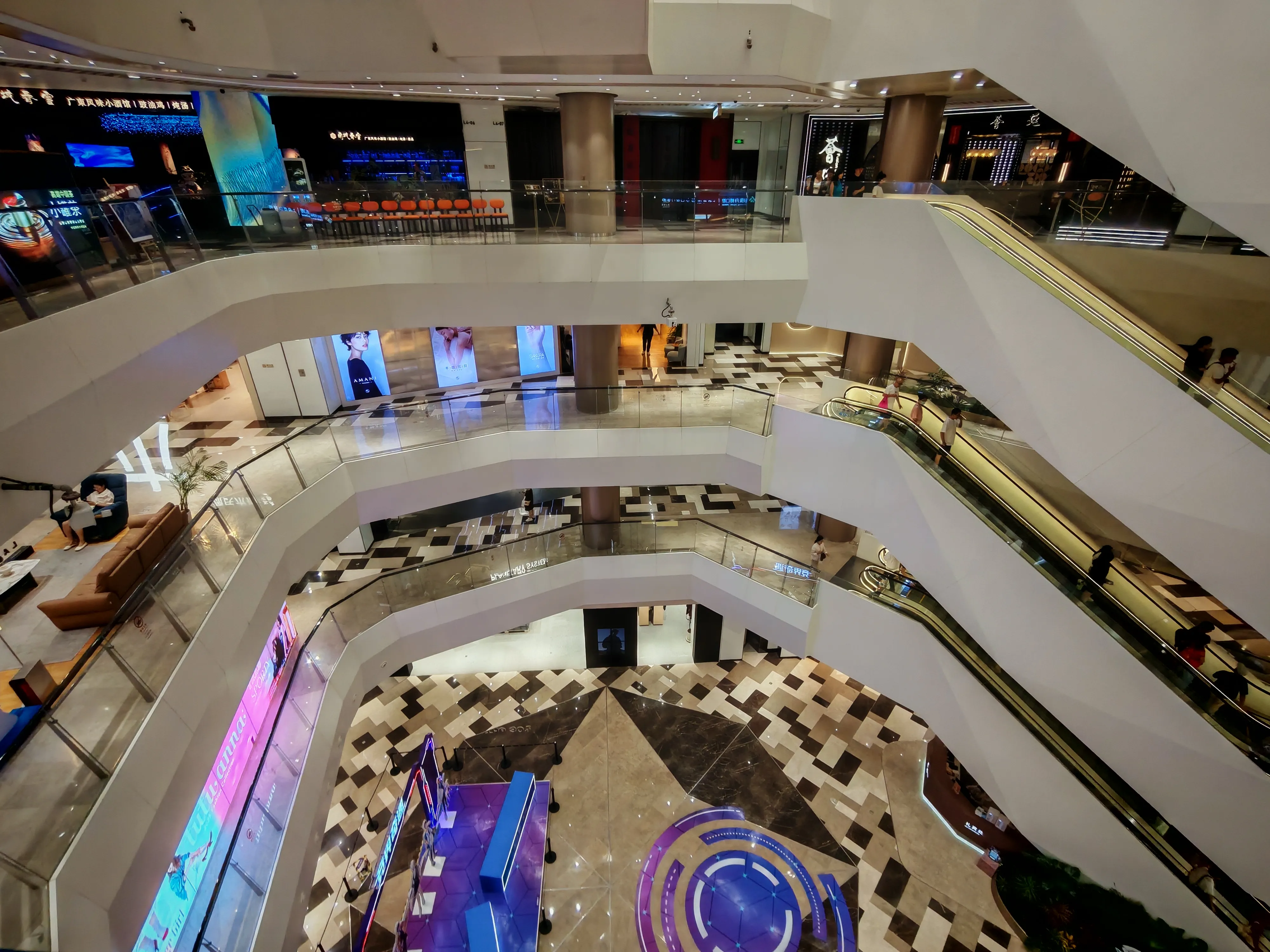 与其他商场不同,这个商场的结构是螺旋形的,这意味着实际上没有绝对的楼层。