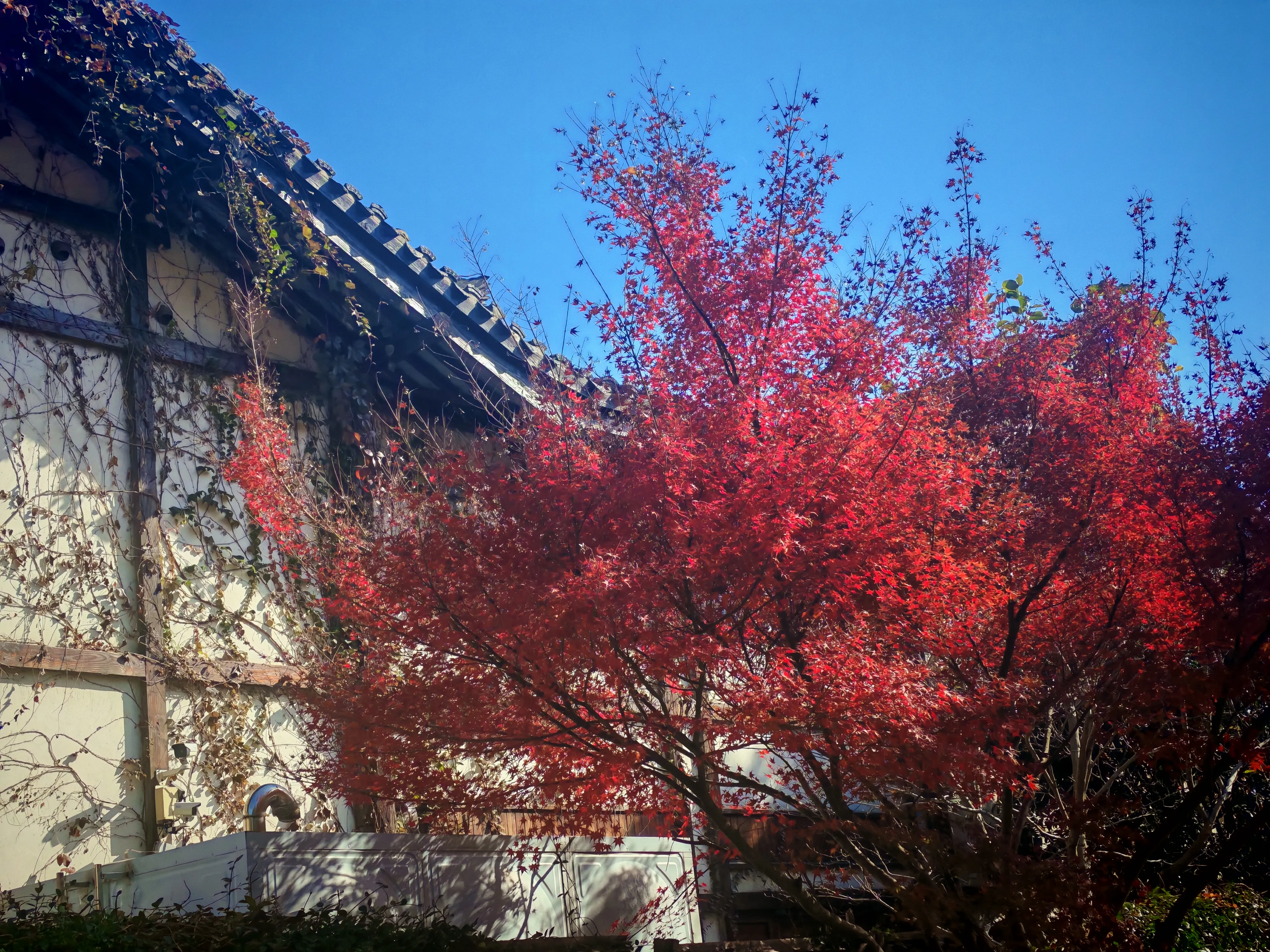 如今应该是遇上“见顷”(ひととき)了,红枫格外绚丽,形成了秋季仅有的独特景观。